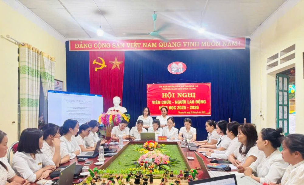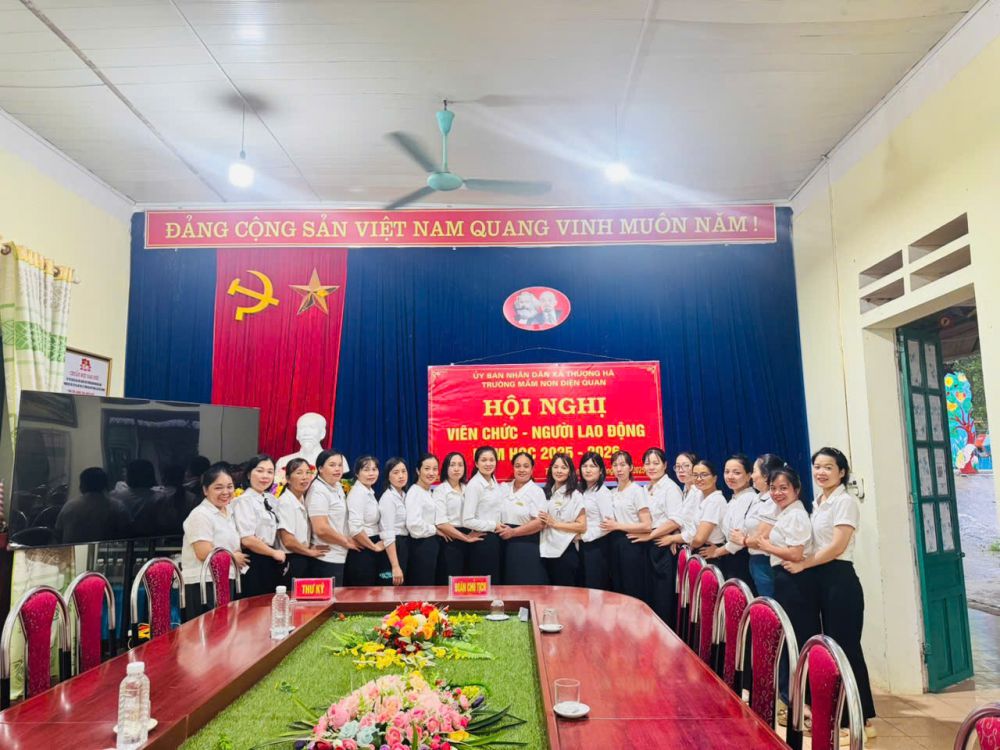 Trường MN Điện Quan long trọng tổ chức Hội nghị viên chức – người lao động năm học 2025 – 2026. Đây là dịp quan trọng để tập thể cán bộ, giáo viên, nhân viên trong nhà trường phát huy quyền dân chủ, cùng thảo luận và quyết nghị các chỉ tiêu, giải pháp trọng tâm nhằm thực hiện thắng lợi nhiệm vụ năm học mới.